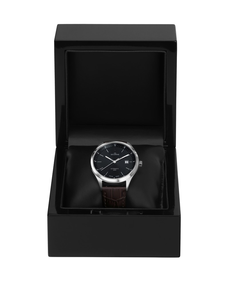 Dette er et nydelig sveitsisk ur som enhver mottaker vil være stolt av å bære. Uret er utstyrt med et automatisk presisjonsurverk. Klokken har safirglass som er en meget hard glasstype og dermed tilnærmet ripesikkert, noe som vil holde den pen i mange år. På baklokket er det plass til å gravere ønsket tekst.